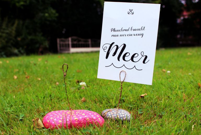 Sprühe zuerst den Stein in der gewünschten Farbe an, ist diese trocken, kannst du ihn noch mit den Lackstiften verzieren. Punkte, Streifen oder auch ein Wort das in Verbindung zum dafür vorgesehenen Foto steht, lass deiner Fantasie freien Lauf.