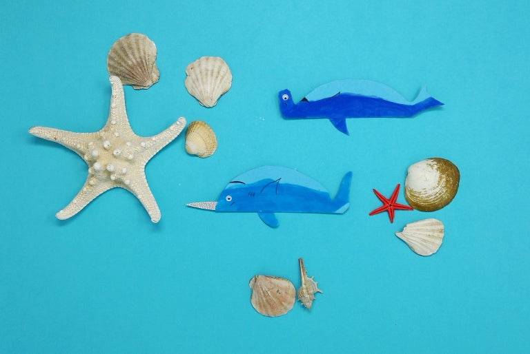 Klebe dem Hai seine Finne von der Rückseite an und verfahre bei dem Narwal genauso.