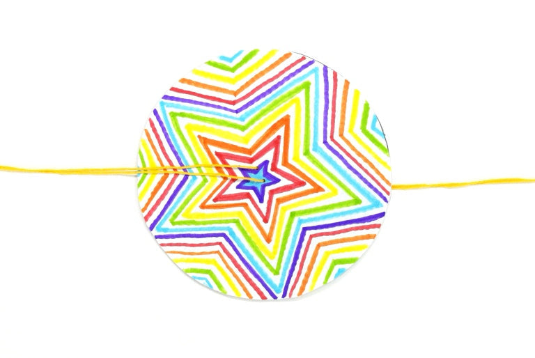 Eine witzige Bastelidee für deine Partygäste ist diese bunte Drehscheibe, die für Wirbel sorgt.