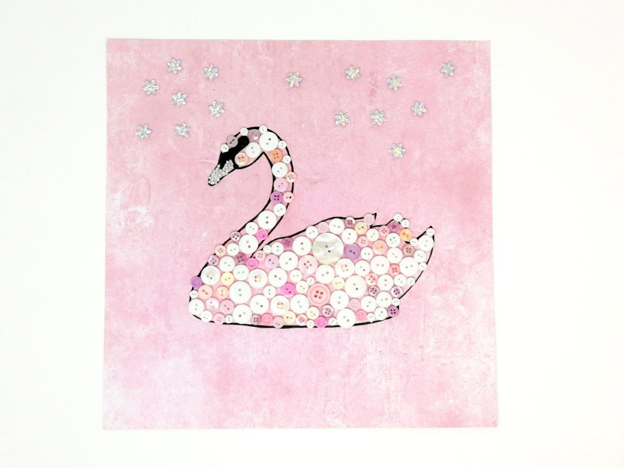 Dieses süße Knopfbild ist einfach gemacht und inspiriert alle kleinen Schwanenfans zum knöpferln...
