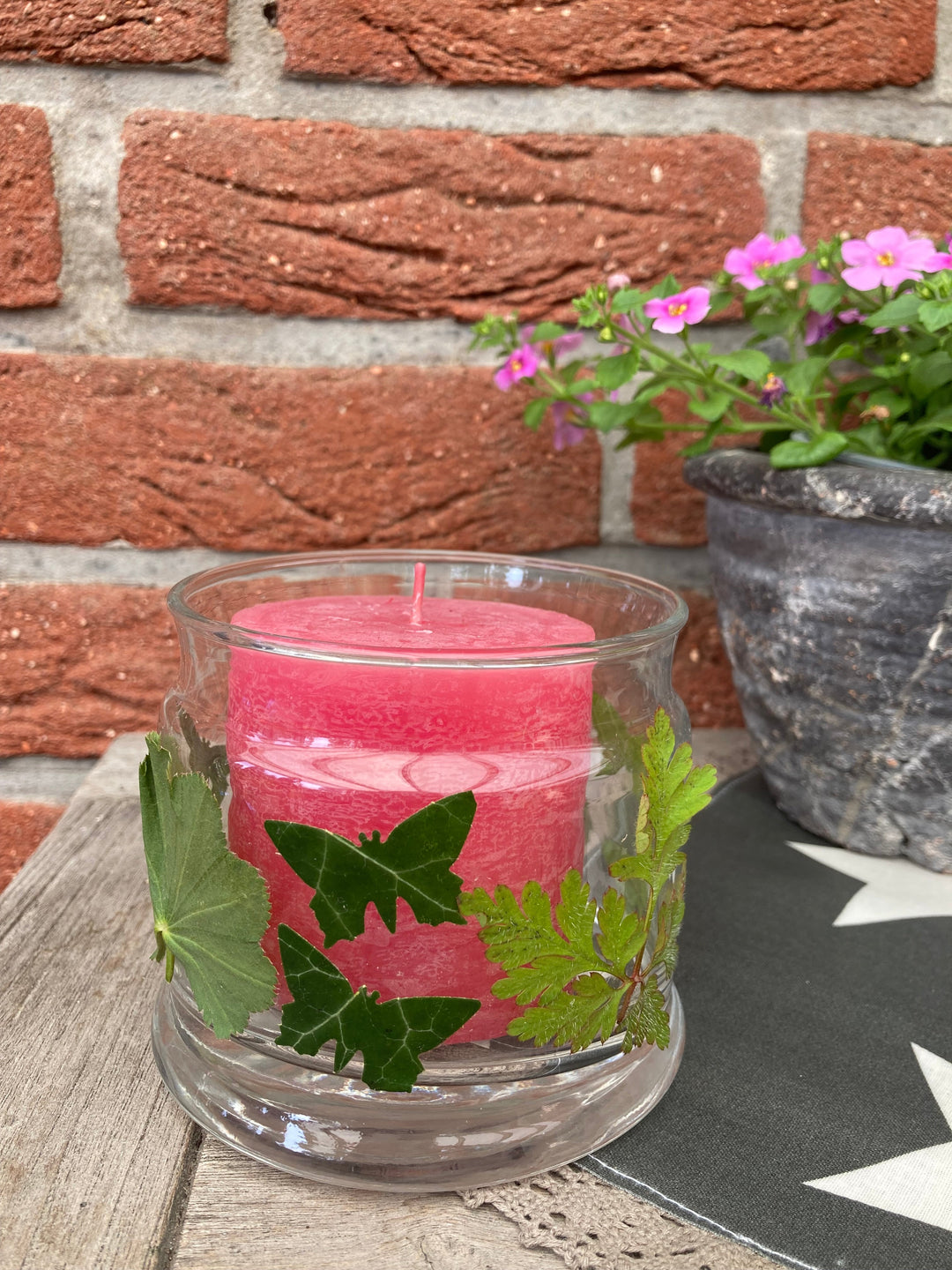 Teelicht mit gestanzten Blättern