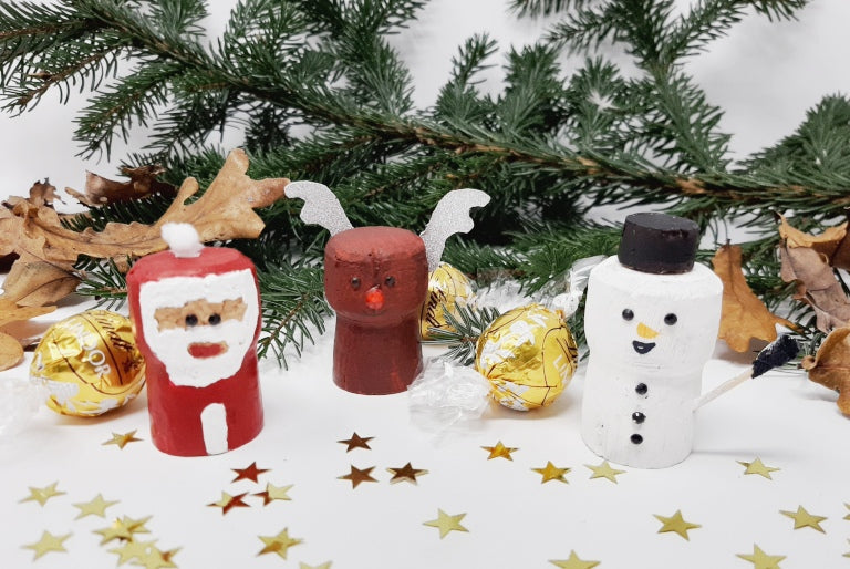 Basteltipp Weihnachtskorkenmänner, Rentiere und Schneemänner