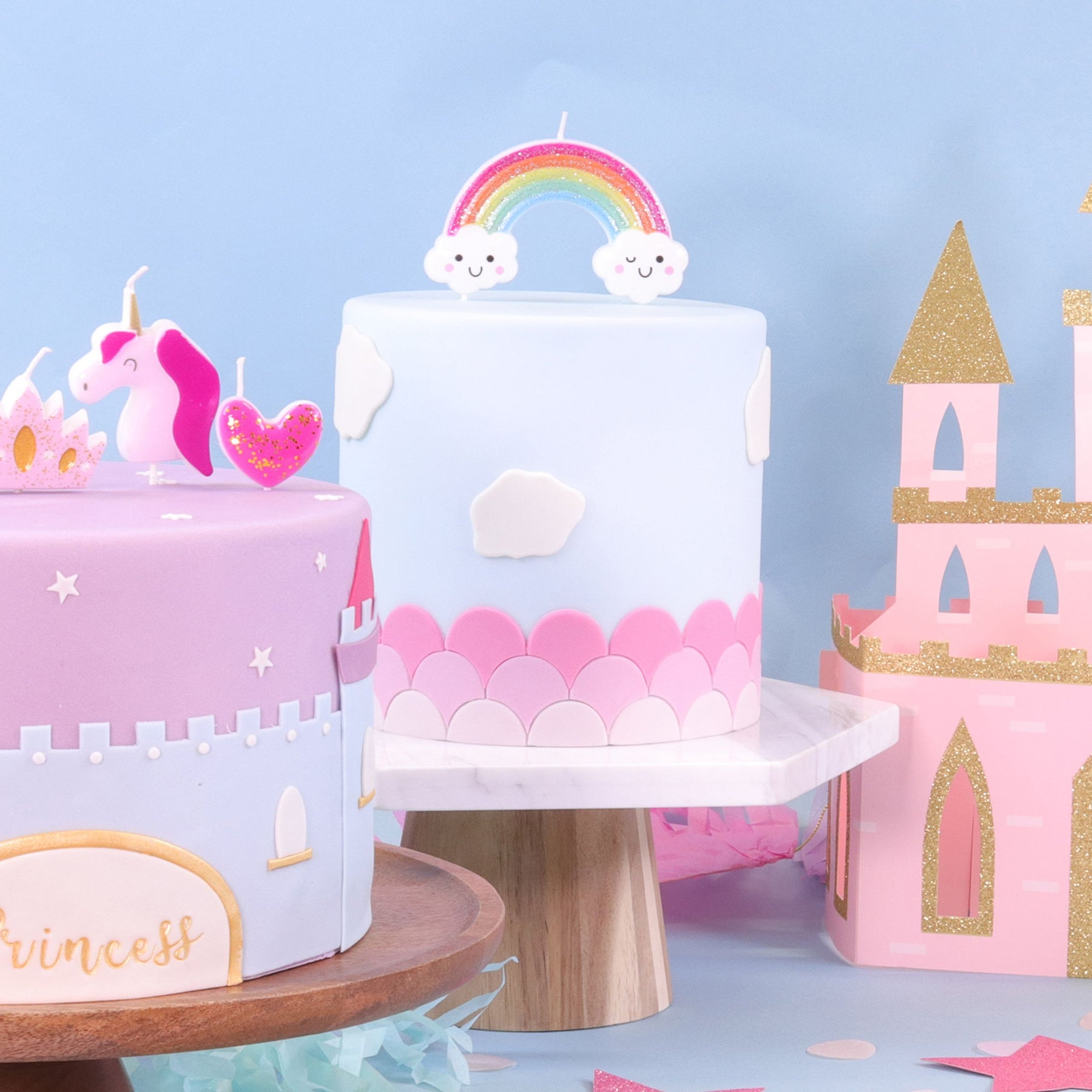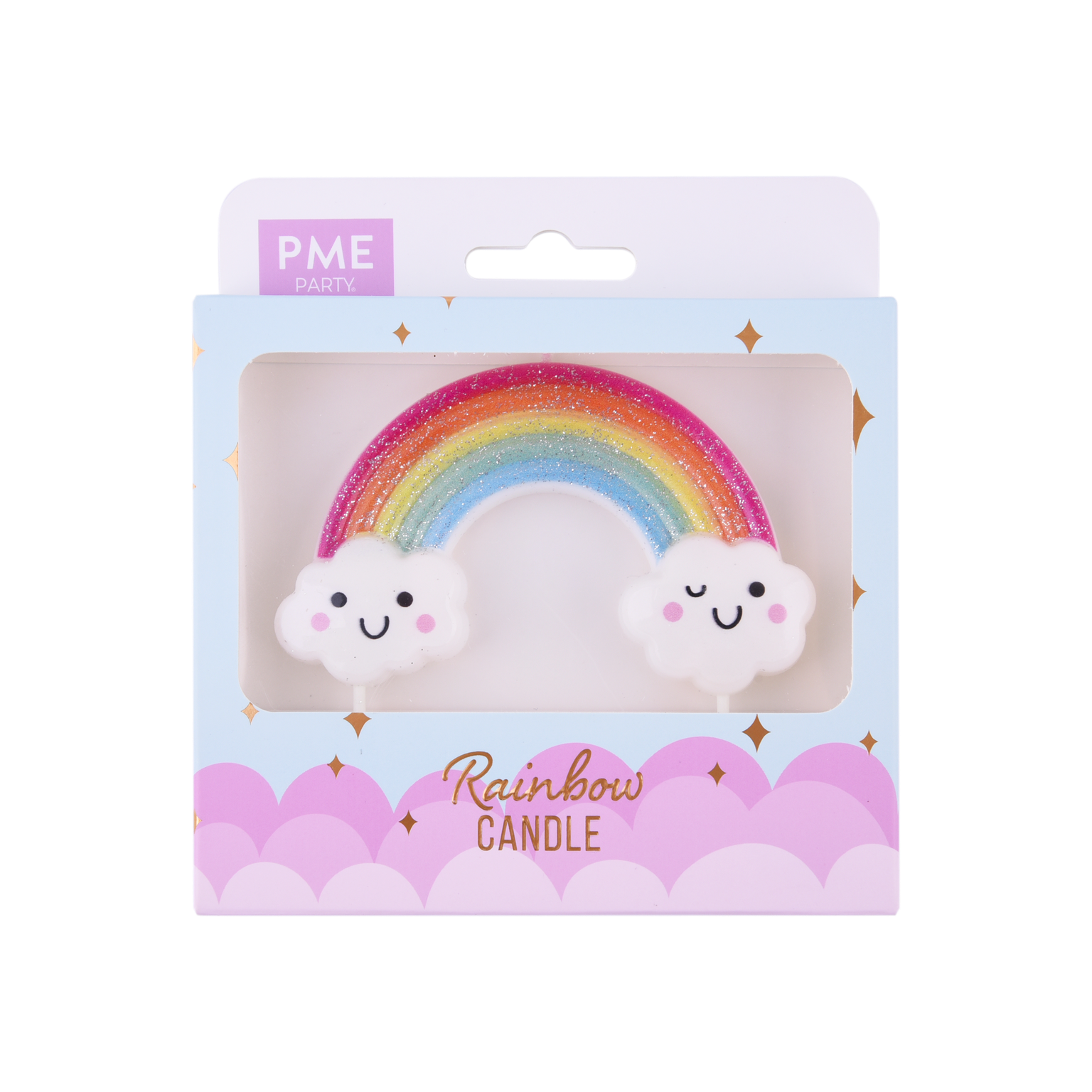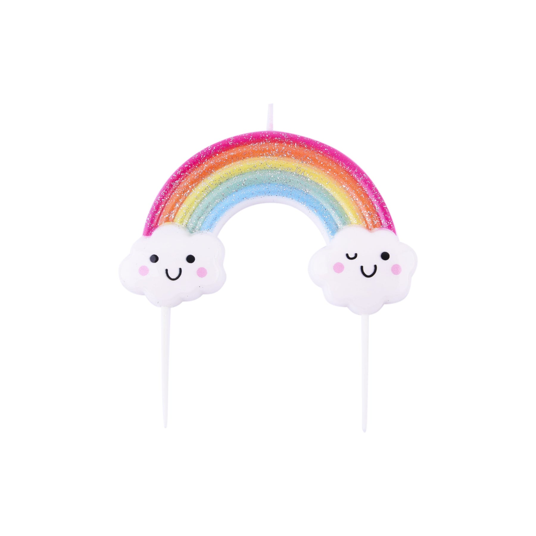 1 sehr stabile Kerze in Form eines Regenbogens mit 2 lustigen Wolken.