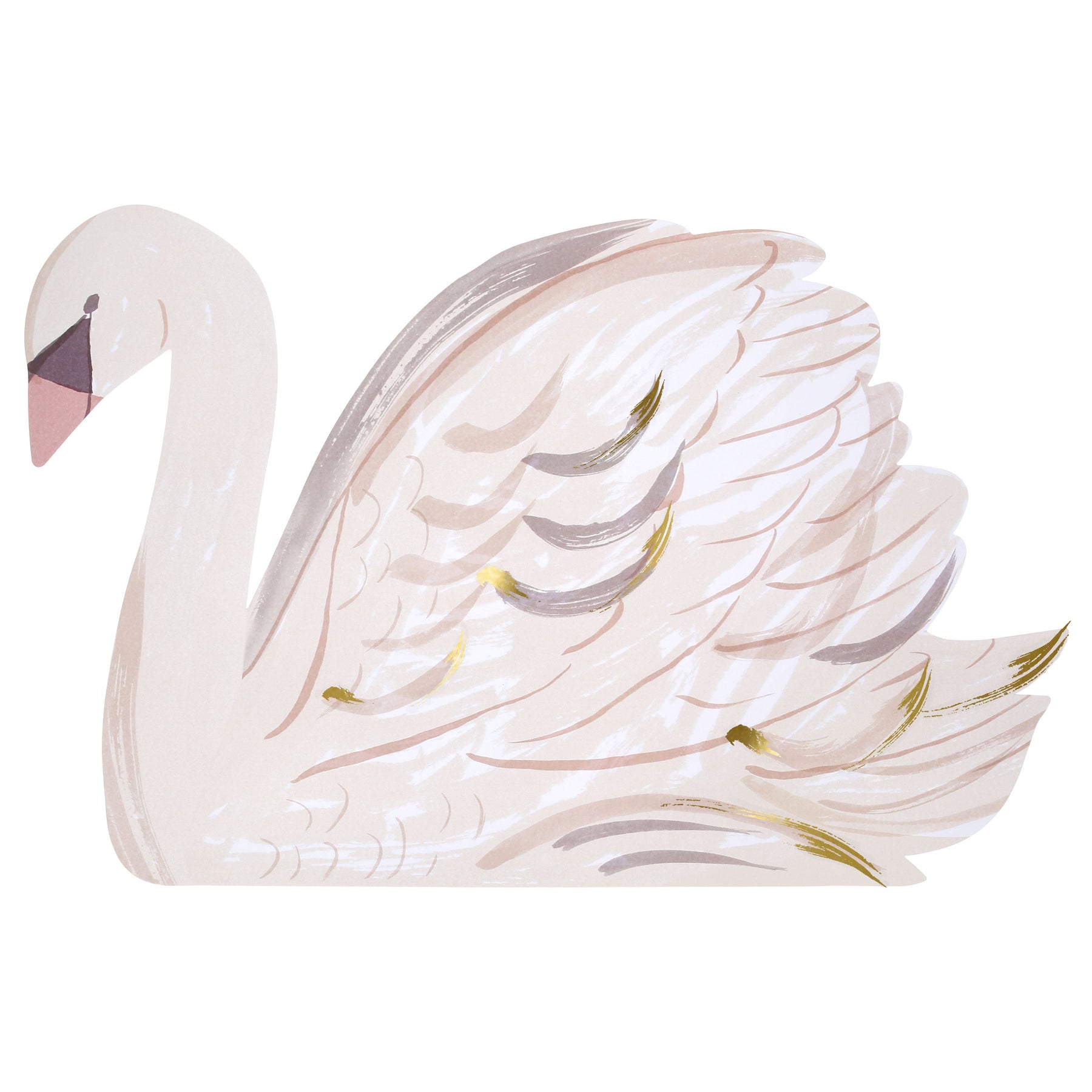 Diese 12 Platzsets sind die Ergänzung zu deinem perfekten Partytisch zum Thema Ballett, Prinzessin oder ähnlichem. Sie sind in Form eines Schwans gestaltet und lassen durch die goldenen Details einen Hauch von Glamour und Schlossatmosphäre einfließen.. Größe ca. 45 x 30 cm.