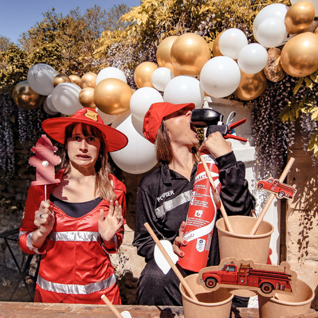 Gestalten Sie den Partyraum mit bunten Luftballons, Wabenbällen und Pom Poms in fröhlichen Farben. Die Girlanden mit Feuerwehrmotiven und die süßen Tischdecken mit Flammen- und Feuerwehrwagen-Designs schaffen eine einladende Atmosphäre. Mit dem passenden Konfetti und den niedlichen Papptellern wird jeder Tisch zum Hingucker.