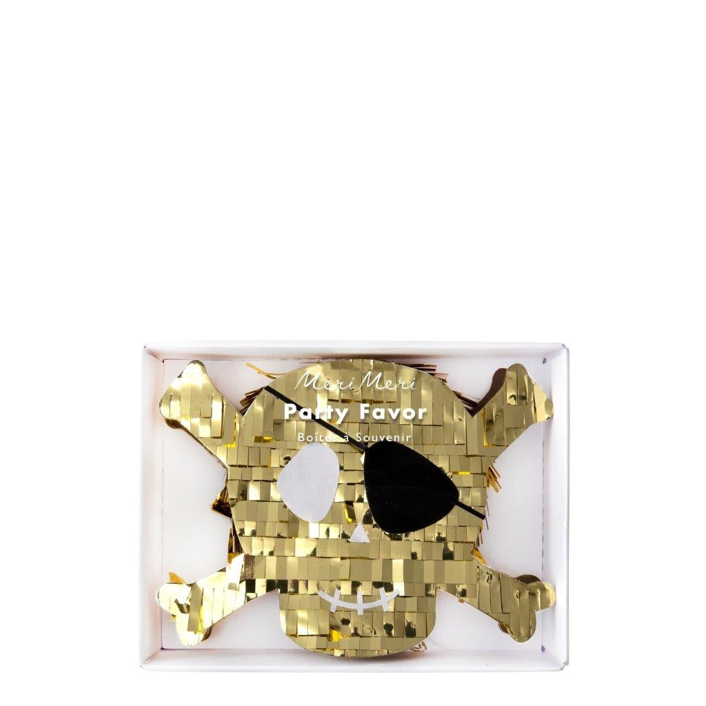 Ein gold funkelnder Totenkopf mit einer goldenen Tassel zum Öffnen. Gefüllt mit farblich passendem Konfetti und 2 Tattoos! Zudem ist noch Platz für kleine Süßigkeiten! Auch als Mitgebsel geeignet! Größe ca. 11 cm x 8 cm