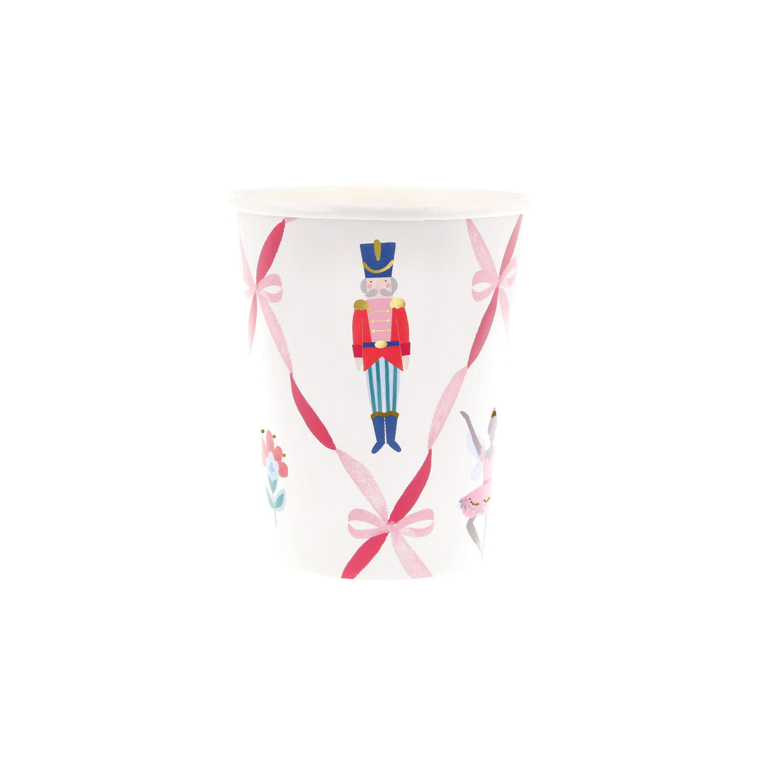 Unsere Produkte im Nussknacker-Look begeistern mit klassischen Soldatenfiguren, roten, goldenen und weißen Farbwelten sowie liebevollen Details. Von Papptellern und Bechern mit Nussknacker-Motiven bis hin zu Girlanden und Hängedekorationen – hier ist alles stimmig und elegant.