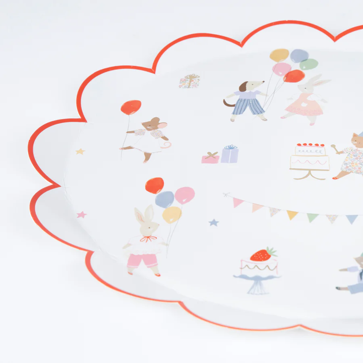 Entzückende Tierparty! Dieses Partyset für 8 Personen ist perfekt für Tierfreunde und erste Geburtstage. Es verfügt über Produkte, die von Vintage und zarten, fröhlichen Farben inspiriert sind. Dieses Set enthält 1 x Animal Friends Pappteller (8 Stück), 1 x Animal Friends Servietten (16 Stück), 1 x Animal Friends Pappbecher (8 Stück), 1 x Animal Friends Partytüten (8 Stück), 1 x Animal Friends Girlande (bestehend aus 2 Teilen, zum einen aus einer Girlande mit einem Happy Birthday Schriftzug, zum anderen aus vielen, süßen Tierfiguren.