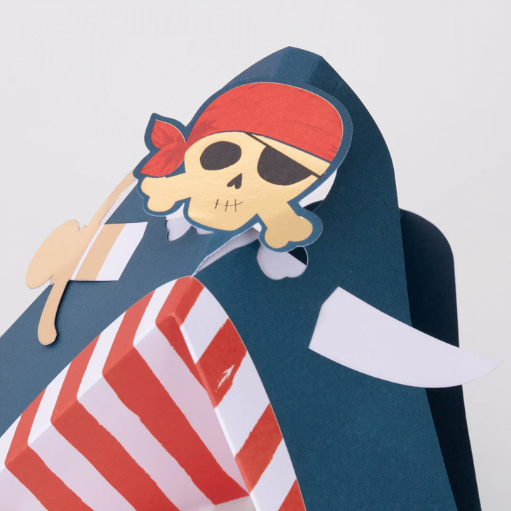 Mit Girlande, Tellern, Bechern, Servietten, Partyhüten und Partytüten ist alles enthalten, um Partytisch und Raum perfekt im Piratenstil zu dekorieren – ideal für einen unvergesslichen Piraten-Kindergeburtstag.