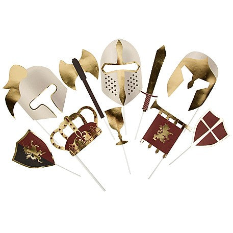 10 Motive vom Ritterhelm bis zu Wappen, Schilder und Schwerter sind in diesem Photoset enthalten. Eine tolle Dekoration für ein aufregendes Foto.