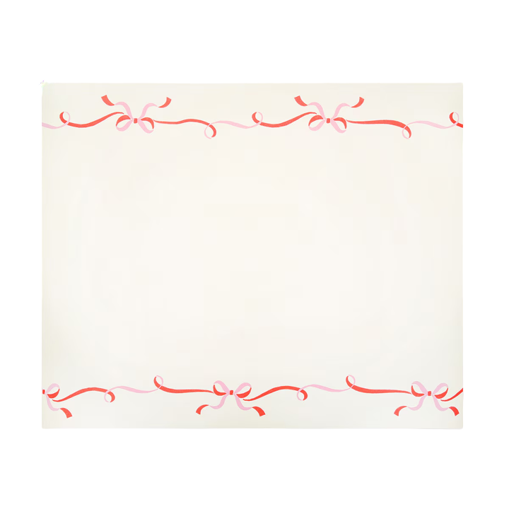 Rosa und rote Schleifen sind das perfekte Design für einen eleganten Festtisch. Das satte, warme Rot verleiht klassischen festlichen Charme, das sanfte Rosa sorgt für einen modernen Touch und das Schleifendesign sorgt für modisches Flair. Dieser Tischläufer aus Papier ist perfekt, um eurer Party im Handumdrehen eine stilvolle Note zu verleihen. Der Läufer ist auf die gewünschte Länge zuschneidbar. Hergestellt aus hochwertigem Papier. Größe ca.: 7,62 x 0,46 m.