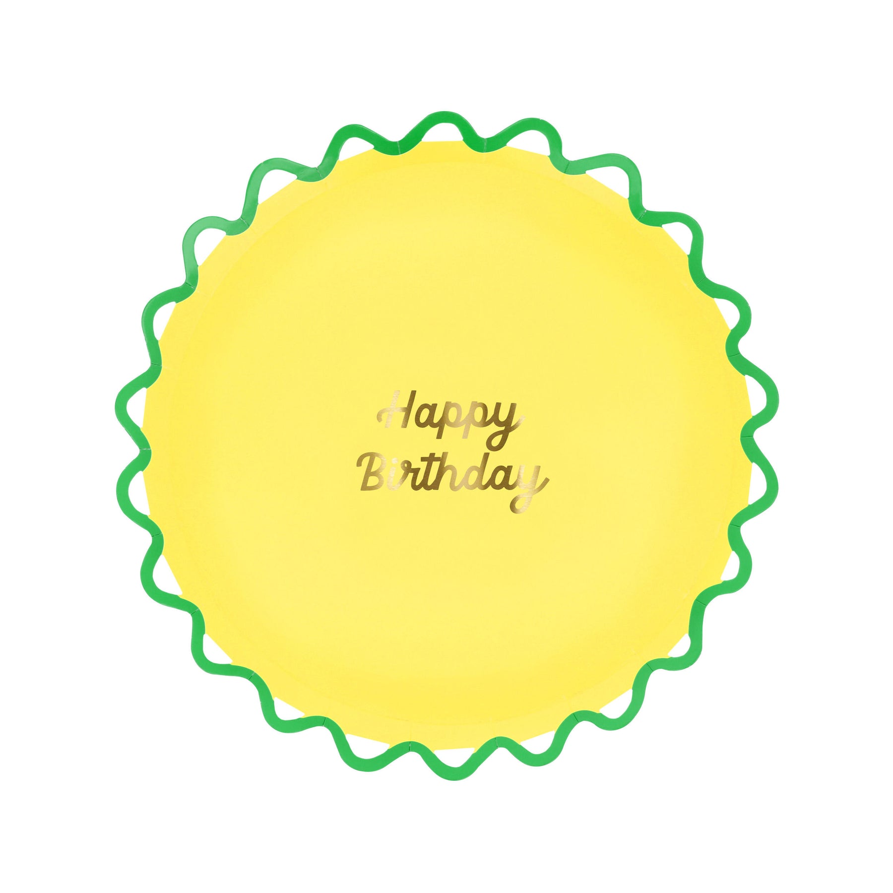 Mit einer fröhlichen Farbpalette, einem trendigen Ricrac-Wackelrand und 'Happy Birthday' in glänzender Goldfolie bringen diese Teller sofort Lebendigkeit und Stil auf jeden Geburtstags- oder Festtisch. Inhalt: 8 Teller, Maße ca. 23,5 x 23,5 cm.
