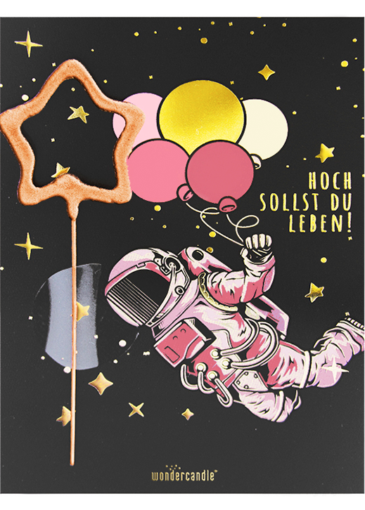Astronaut Mini Wunderkerze auf Karte
