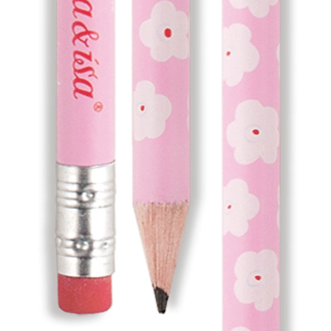 Bleistifte kann man immer gebrauchen und diese verschönern jeden Schreibtisch! Bedruckt mit vielen Blümchen auf rosafarbenem Hintergrund und in bester Schreibqualität plus Radiergummi.