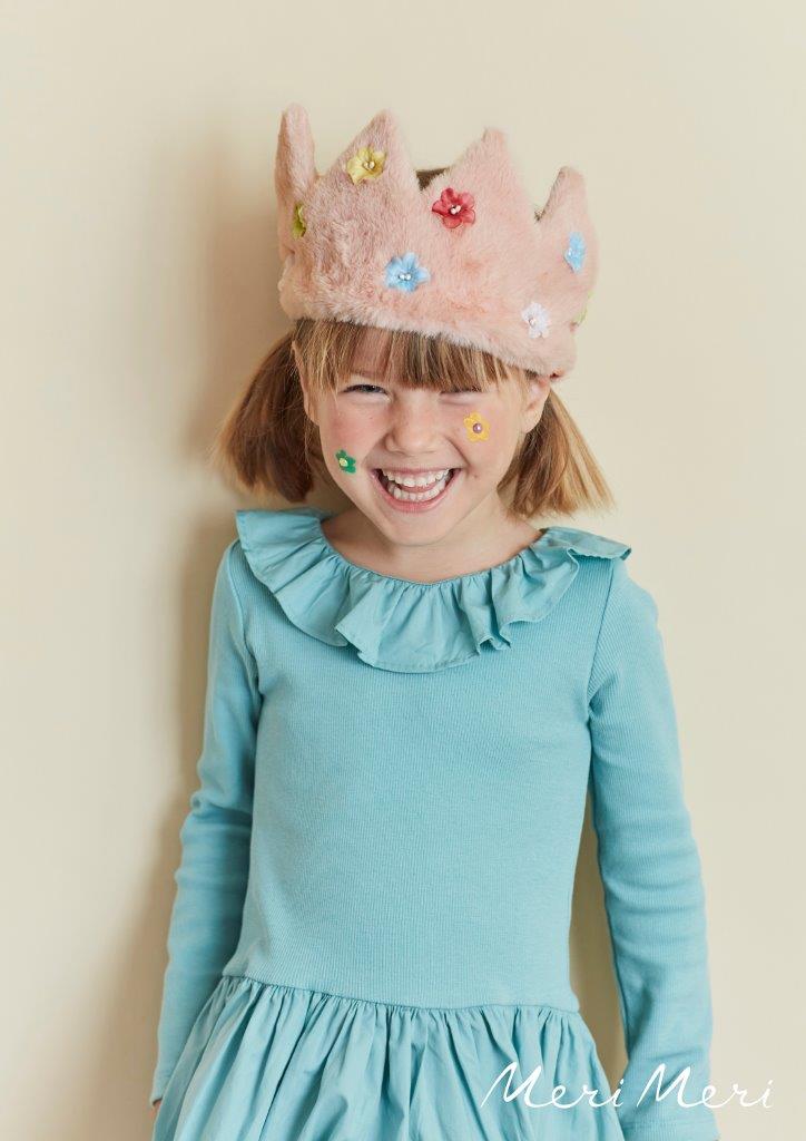 Wenn ihr eine Königin oder Prinzessin seid, wollt ihr die beste Krone, die es gibt – und Meri Meri hat es geschafft! Diese bezaubernde Krone besteht aus fühlbarem rosa Plüsch, der unglaublich angenehm zu tragen ist, und verfügt über Stoffblumen für eine schöne Note. Ein wunderbares Geschenk und Ergänzung zu einer Geburtstagsparty. Rosafarbener Plüschstoff mit Wattierung auf der Innenseite. Rückseite aus rosafarbener Baumwolle. Elastisch, mit rosafarbener Baumwolle überzogen. Stoffblumen in Dunkelrosa, Gelb, Minze, Blau und Elfenbein. Geeignet für Kinder ab 3 Jahren.
