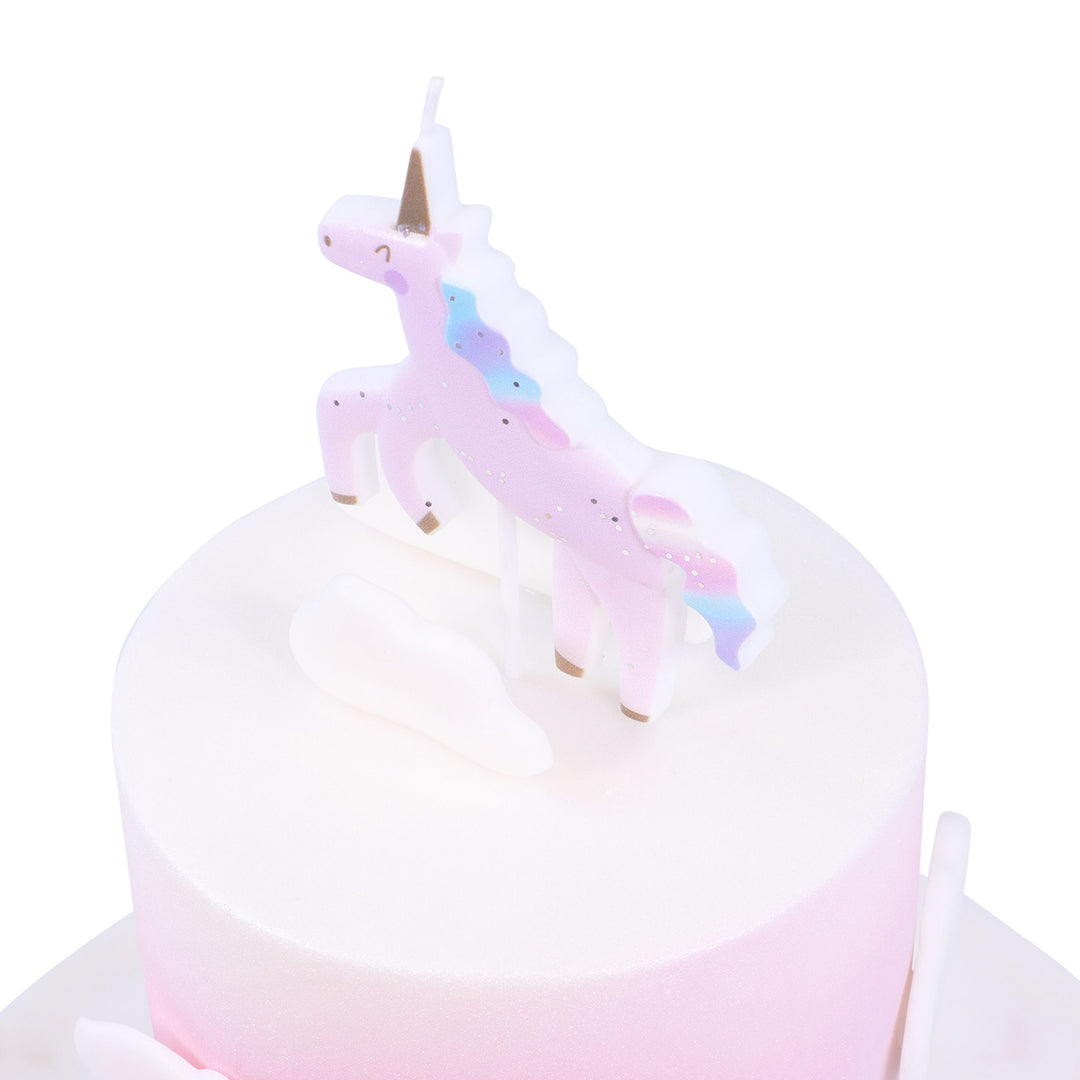 Eine Einhornkerze für einen ganz besonderen Geburtstagskuchen. Stabil und mit goldenem Glitzer.