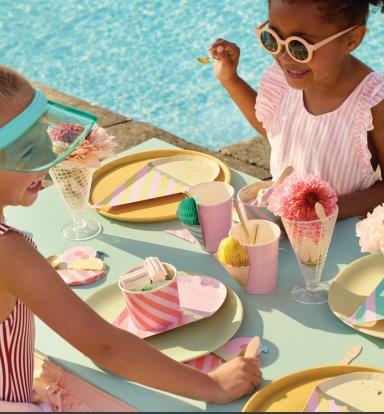 Verleiht eurem Partytisch den unbeschwerten Geist der kalifornischen Sonne mit diesen verspielten Eisbecher-Servietten. Mit ihrem süßen Streifen-Design und den glänzenden Goldfolien-Akzenten bringen diese Papierservietten Spaß und sommerlichen Stil in jeden Anlass. Perfekt für alles, von Geburtstagsfeiern bis hin zu Grillabenden, Picknicks, Strandabenden oder Treffen in den Schulferien. Größe ca. 16,5 x 12 cm.