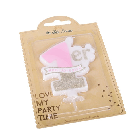 1 große Kerze zum Ehrentag, verziert mit Goldglitzer und stabilem Kuchenstecker.