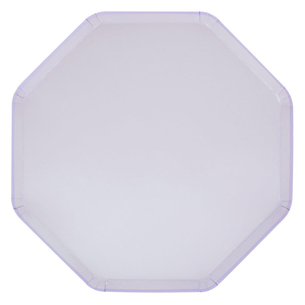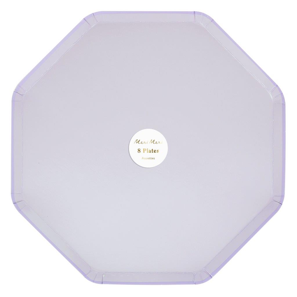 Die achteckige Form dieser Teller, die mit einem Fliederton auf der Vorder- und Rückseite bestechen, sind eine atemberaubende Wahl für Ihre Party oder Ihr besonderes Abendessen. Sie sind perfekt für eine Babyparty, eine Geburtstagsfeier oder eine Feier, bei der Sie eine beruhigende Farbpalette wünschen. Die Teller sind Teil unserer stilvollen, neuen Mix and Match Serie.