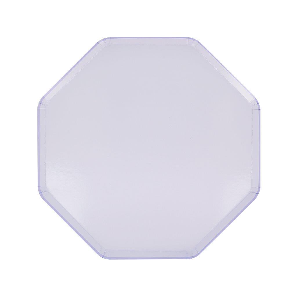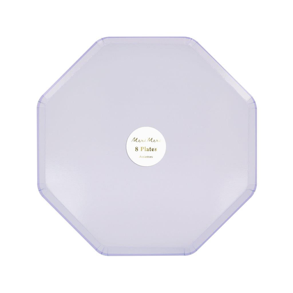 Die achteckige Form dieser Teller, die mit einem Fliederton auf der Vorder- und Rückseite bestechen, sind eine atemberaubende Wahl für Ihre Party oder Ihr besonderes Abendessen. Sie sind perfekt für eine Babyparty, eine Geburtstagsfeier oder eine Feier, bei der Sie eine beruhigende Farbpalette wünschen. Die Teller sind Teil unserer stilvollen, neuen Mix and Match Serie.
