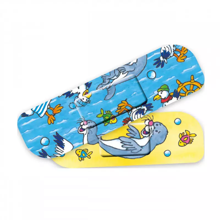 Lustige Kinderpflaster, 10 Stück in 2 Größen (70 x 20 mm, 56 x 19 mm) in Papierbriefchen.