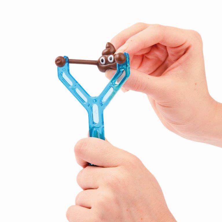 Zielen, abfeuern, Spaß haben! Einfach den lustigen, super-elastischen Kackhaufen in die Schleuder einspannen und mit Freunden um die Wette schießen!