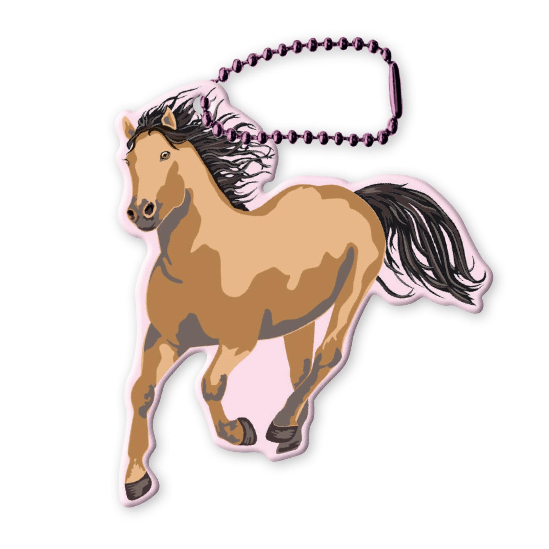 Reflektierende Anhänger zum Befestigen an Taschen, Jacken oder ähnlichem für bessere Sichtbarkeit im Straßenverkehr - in Form eines Pferdes.