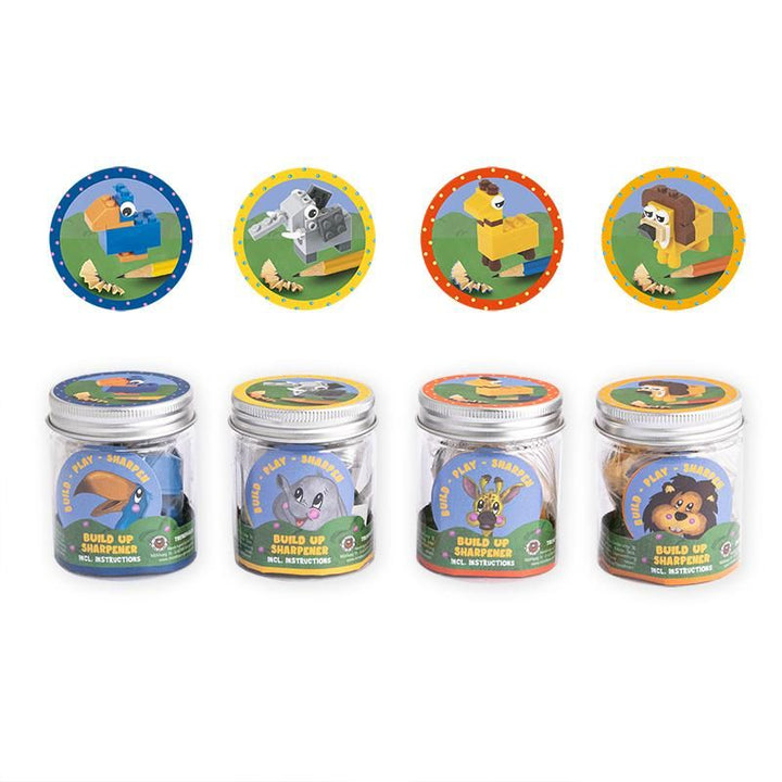 Erhältlich in 4 verschiedenen Bausets: Elefant, Vogel, Löwe, Giraffe - Preis gilt für einen Anspitzer mit Figur - Auswahl erfolgt zufällig, bei Mehrfachbestellung, wenn möglich, gemischt.