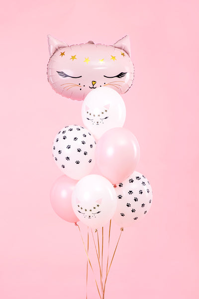 Luftballonsortiment Kätzchen. Set enthält 6 Ballons (2 Pastel Pure White Ballons mit farbigem Aufdruck, 2 Pastel Pure White Ballons mit schwarzem Aufdruck und 2 Pastel Pale Pink Ballons), Durchmesser ca. 30 cm.