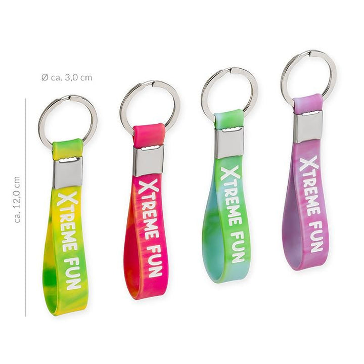 Have XTREME fun! Dieser trendige Silikon-Schlüsselanhänger mit smoother Soft-Touch-Oberfläche und coolem Colour Mix ist ein echtes Highlight. Dein idealer Begleiter für Sport, Freizeit und Alltag - stylisch, strapazierfähig und mit Metall-Schlüsselring.