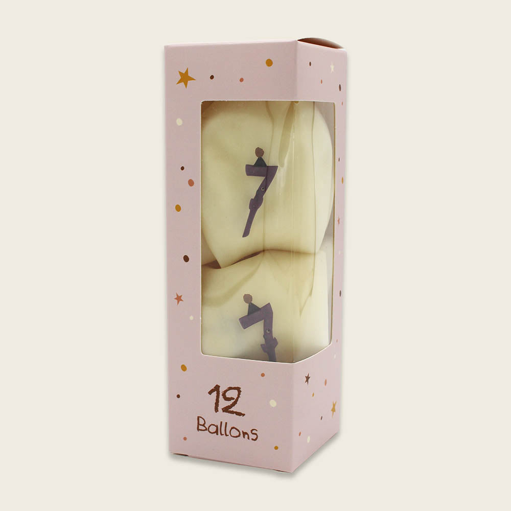 12 herrliche Ballons mit der Geburtstagszahl 7. Stolz kann mit diesen Ballons gezeigt werden, wie alt/ jung das Geburtstagskind geworden ist. 100 % Naturkautschukballons mit einer lustigen Figur in Form einer lilafarbenen Zahl.