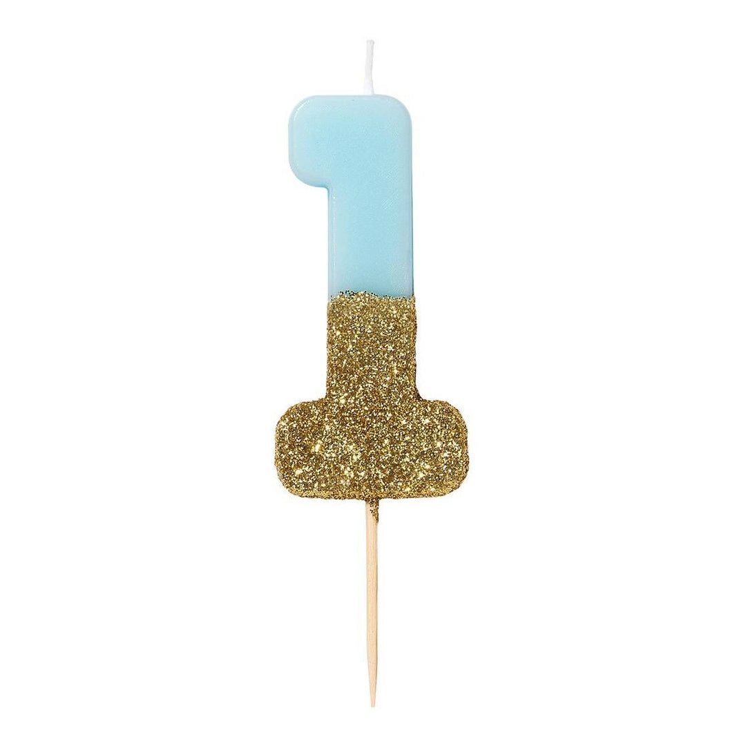 Zahlenkerze hellblau/gold 1